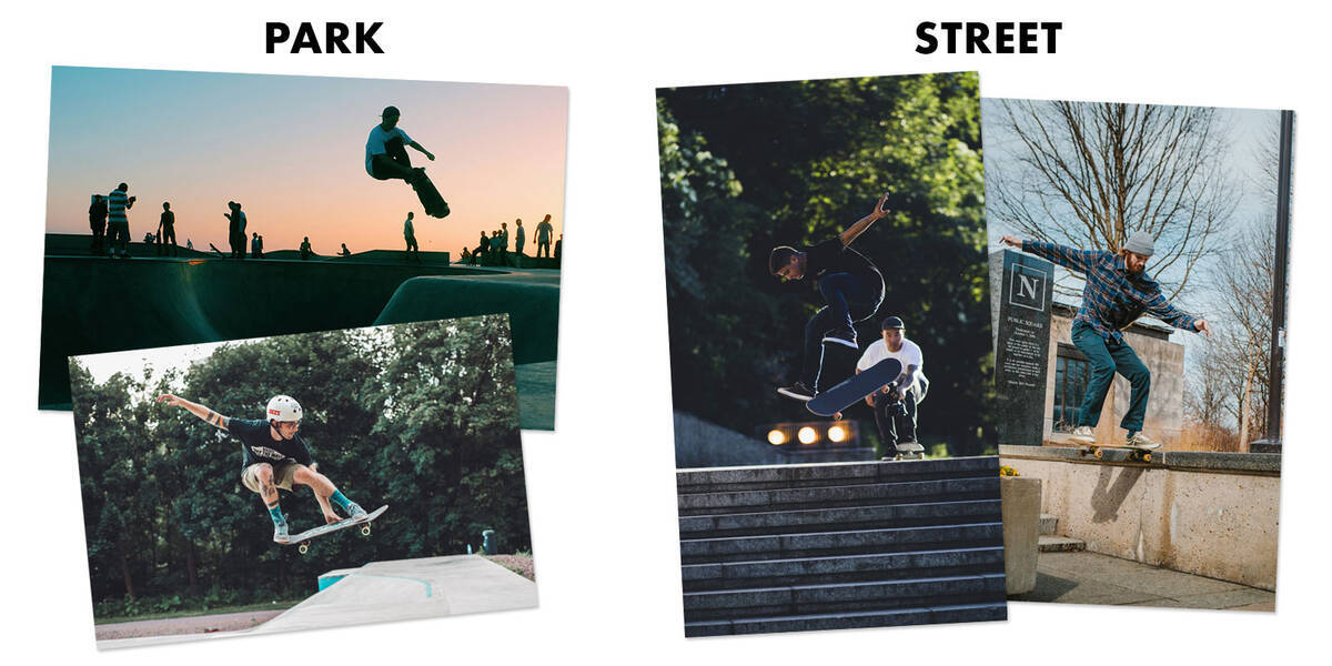 Skateboarding can be broadly divided into three key styles: street, park, and transition. Don't be confined by categories; even with a street-oriented setup, feel free to try out a bowl whenever you like!