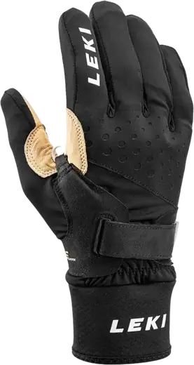 The Nordic Race Shark Premium Gloves by Leki Poles and Gloves represent the pinnacle for cross-country skiing enthusiasts. Offering an exceptional grip, thanks to palms made entirely of goatskin leather, they incorporate the GORE-TEX® INFINIUM™ lining that is both windproof and warm. The TRIGGER Shark system, along with the integrated power frame, ensures efficient power transmission.